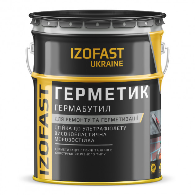ГЕРМАБУТИЛ IZOFAST (сірого кольору) призначений для зовнішніх робіт із герметизації стиків бетонних залізобетонних і металевих конструкцій, герметизації стиків і швів зовнішніх стін, примикальних балконних плит, віконних і балконних блоків у великолильних будівлях, теплицях.